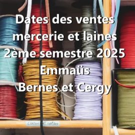 Dates des ventes mercerie et laine à Emmaüs Bernes et Cergy au 2ème semestre 2025